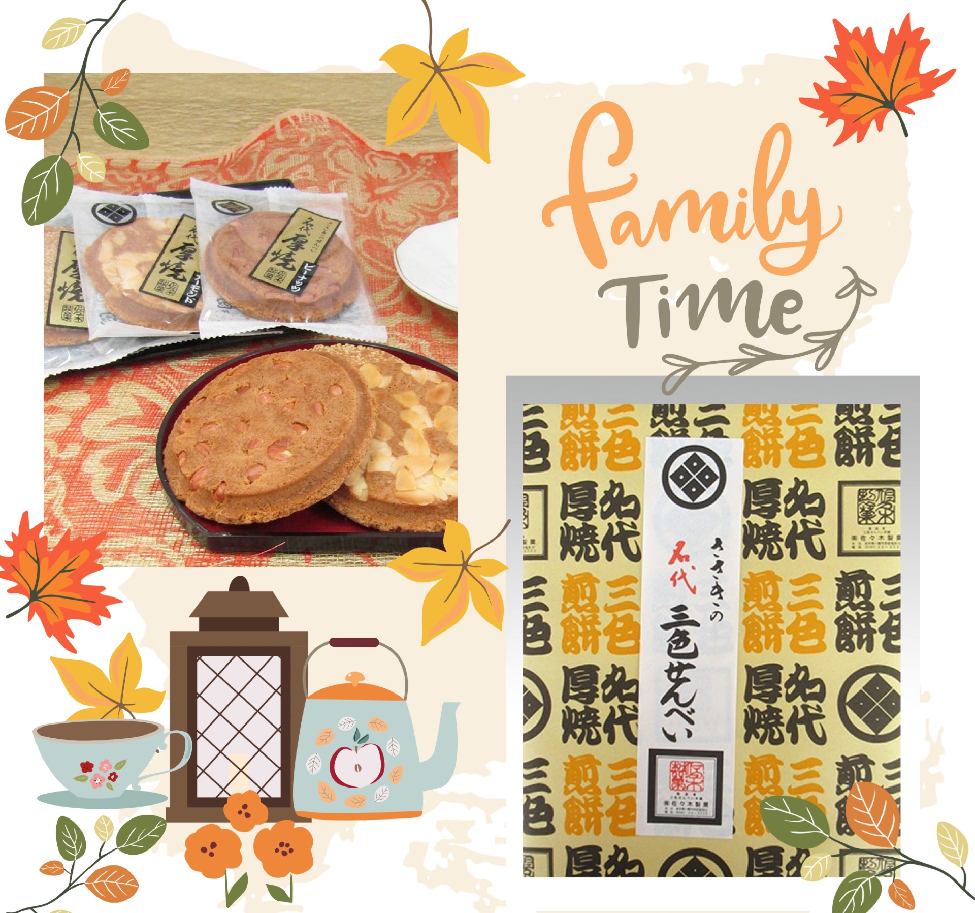 作為岩手縣特產而聞名的南部煎餅,加入了砂糖、雞蛋與奶油後烤製而成,呈現餅乾風味的煎餅,內含厚烤花生、厚烤杏仁和厚烤白芝麻的三種組合。