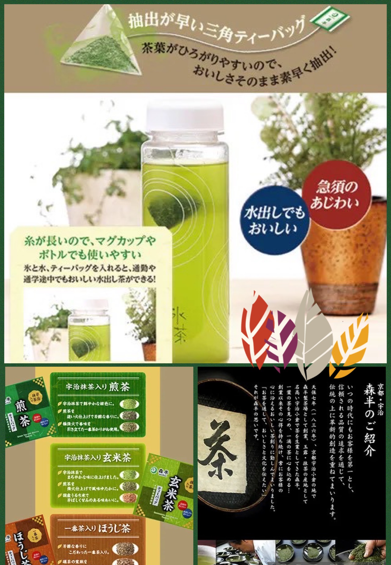 這是一組包含煎茶、玄米茶、焙茶三種日本茶的茶包組合。三角形茶包設計,讓茶葉能夠輕鬆舒展開來方便萃取,隨時都能輕鬆享受美味的茶。茶包的線較長,也容易用在個人隨行杯中。無論熱飲或冰飲都能美味享用。