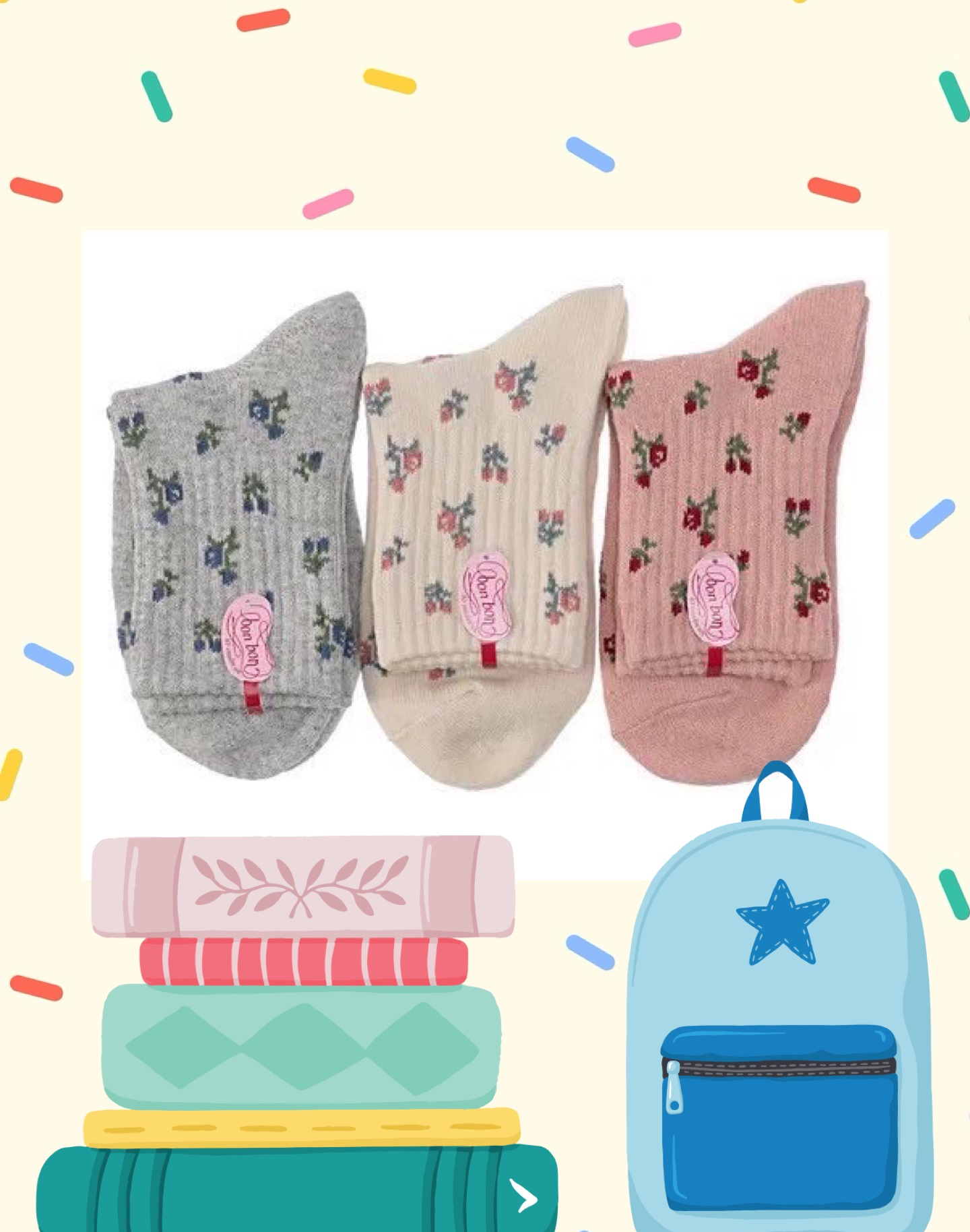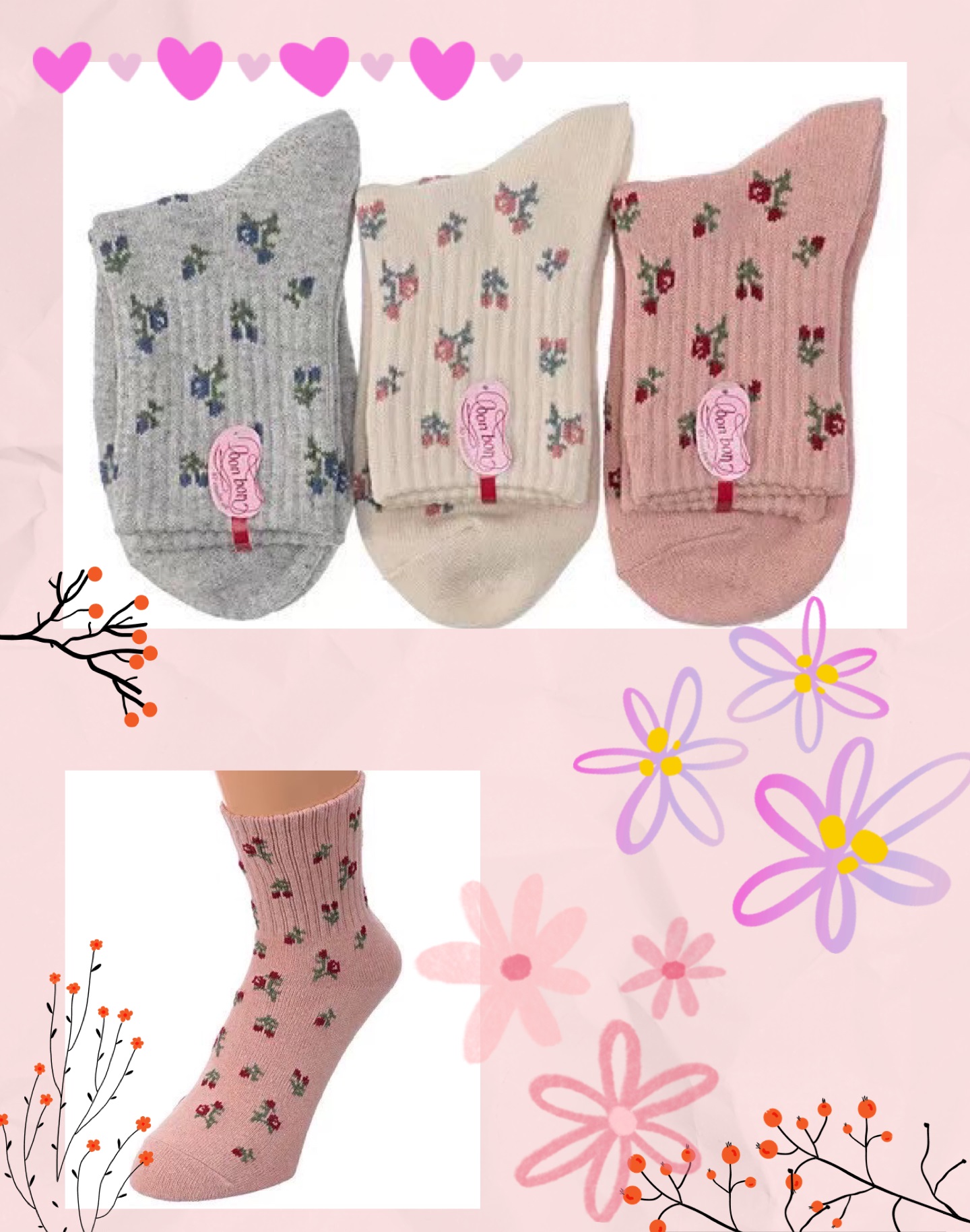 這款可愛的襪子飾有色彩繽紛的花朵圖案,具有卓越的吸濕排汗性能。