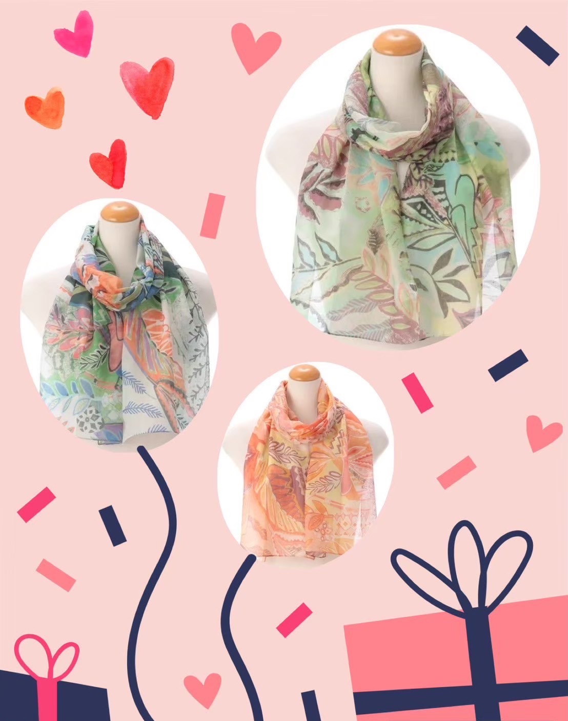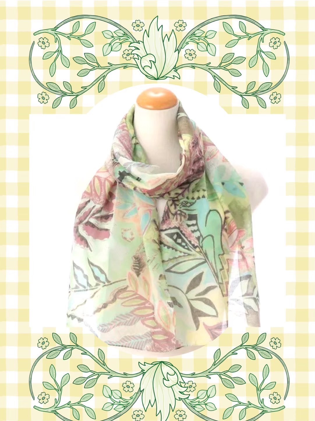 這款採用抗皺聚酯纖維製成,鮮豔的圖案與輕薄的面料形成鮮明對比,搭配各款服飾都能增添亮麗的嬌點。