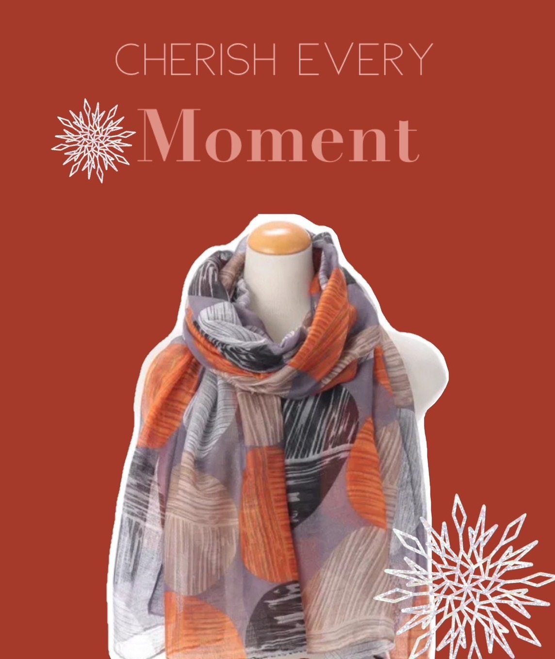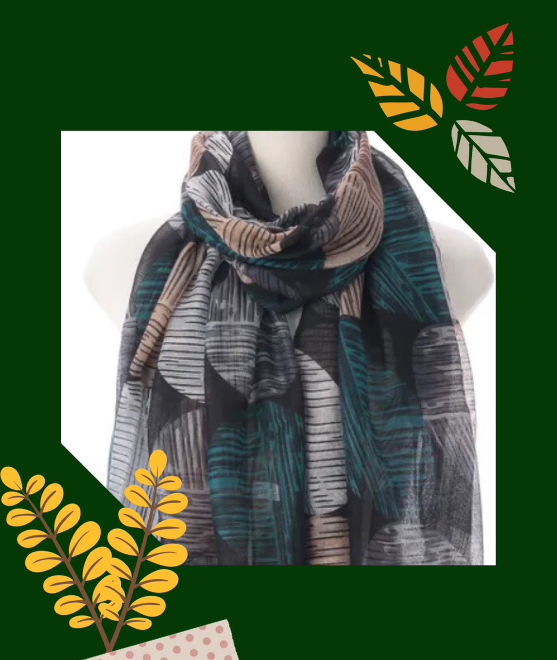 這款採用抗皺聚酯纖維製成,幾何圖案受到各個年齡層的喜愛,沉穩色調展現洗鍊成熟風情,即使搭配簡約的服裝,只要將它圍在脖子上,也能展現優雅氣質。