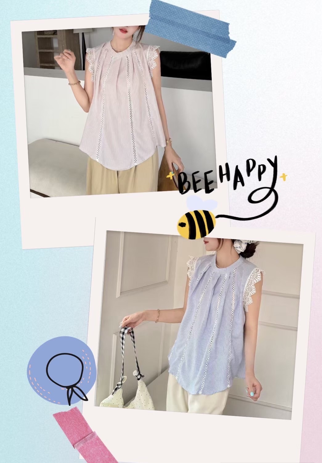 蕾絲拼接上衣小領口與A字版型,不緊繃的穿著舒適感,搭配袖口蕾絲襯托出柔美的亮點。